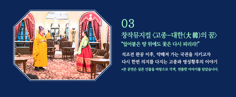 ○ 창작뮤지컬 <고종-대한(大韓)의 꿈〉 "얼어붙은 땅 위에도 꽃은 다시 피리라!"