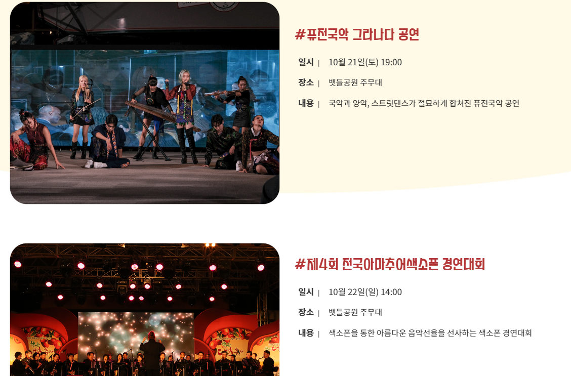* 개회식 : 2023. 10. 13.(금) 18:30 보은읍 뱃들공원 주무대