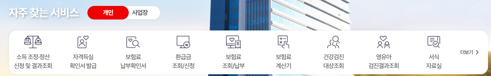 아래 링크의 사이트 접속 후, 아래 그림의 건강검진 대상조회 클릭후 로그인하여 대상조회 확인