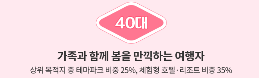 40대에게 있어 추천지로는 어린아이들과 함께 할 수 있는 대공원들이 꼽혔습니다. 용인 - 에버랜드, 서울 - 워커힐호텔, 서울 - 롯데월드, 서울 - 서울어린이대공원 순 입니다. 위제 장소들은 40대뿐만 아니라 20 ~ 30대까지 데이트 장소로 좋으니 2030분들에게도 꼭 추천되어야 되는 장소 같습니다.
