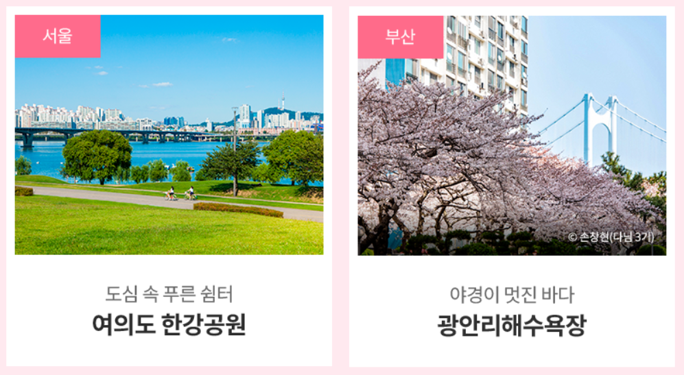 20대들에게 인기 추천 장소로 서울 - 여의도, 부산-광안리해수욕장, 고양-일산호수공원, 인천-월미도가 인기장소로 꼽히고 있습니다. 20대들에게는 아마도 고즈넉하고 추억보다 굉장한 핫플레이스가 굉장한 감흥이 오지 않을까 생각합니다. 젊을수록 젋은 친구들이 많이 모이는 곳으로 가야 젊은다운 추억이 기억속에 담기지 않을까요?