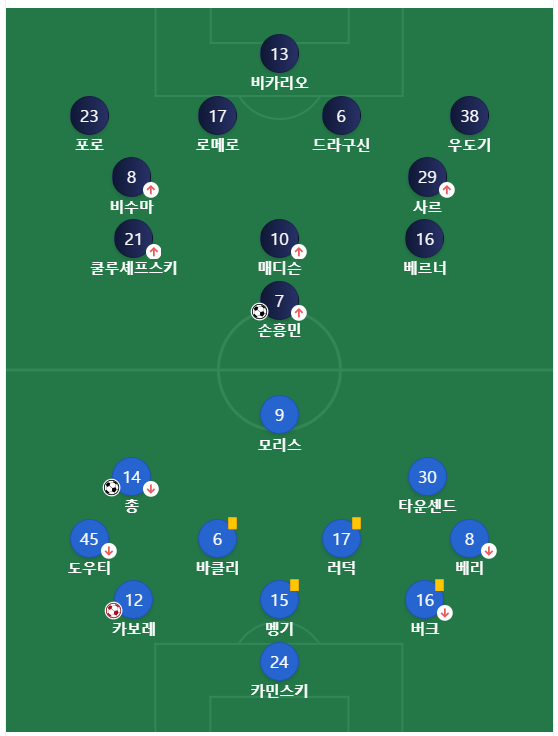 토트넘의 진형은 4-2-3-1로 해당 경기에 임했으며, 루턴의 경우 3-4-2-1로 경기에 임했습니다.